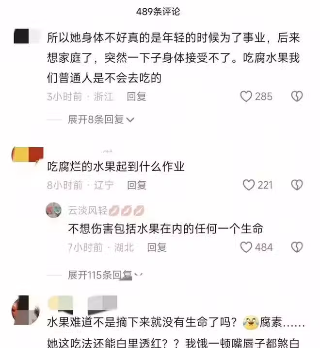 別急,故事還有後續。更讓人震驚的是,大S不僅堅持吃腐爛水果,還會用一些讓人不敢相信的方式來減肥。很多網友也紛紛留言表示,大S是天生黑皮,出道早期為了能在娛樂圈裡脫穎而出就打了美白針,甚至還吃抗凝血劑,就是為了白的透明而且看不見皮膚下的血管,估計就是這種極端追求美的手段讓大S把身體搞垮了。