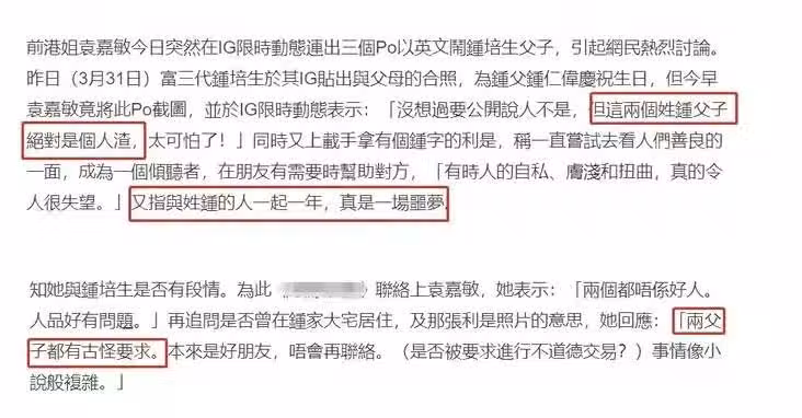 袁嘉敏說自己從來沒有在公開場合說過別人壞話,但鍾家這對父子真的是「人渣」,真的太可怕了。