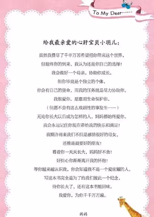 她坦言自己並不是個愛炫耀的人,寫下這些文字完全是為了留下與女兒共同的記憶,「期待你長大了,還有這本書能回味,我愛你,為你千千萬萬遍。
