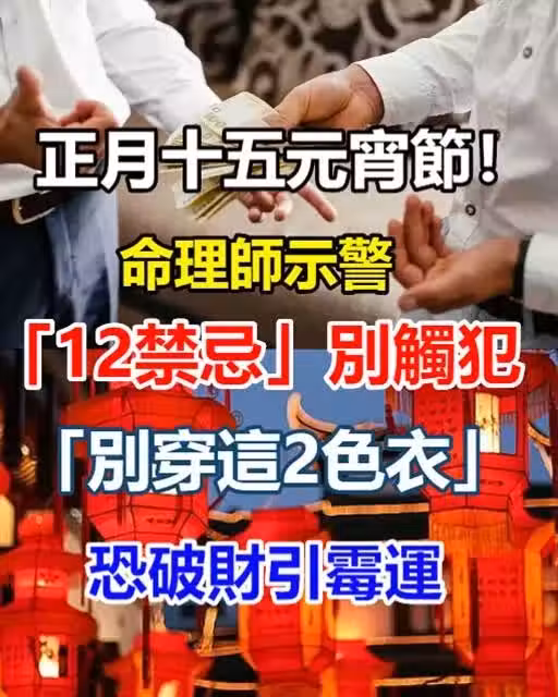 下周三即將迎來一年一度元宵節,也是三官大帝之天官大帝的誕辰,民間更以「小過年」定義元宵節,民俗專家楊登嵙也指出,元宵節是傳統重要節日,所以更要注意傳統上的「12禁忌」,否則恐怕引來霉運!據《TVBS》報導,楊登嵙透露「元宵節12大禁忌」