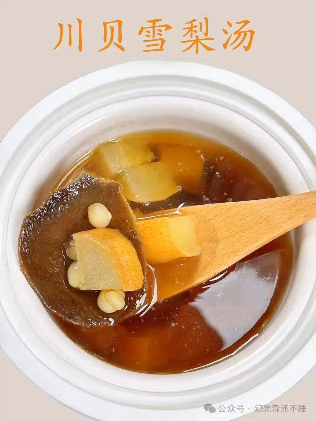 第一碗清肺茶,用雪梨、川貝和冰糖煮。雪梨清甜多汁,川貝能清熱化痰,冰糖則能潤肺止咳。把它們一起煮成茶,喝上一口,甜絲絲的,還能把那些黏糊糊的痰給趕跑。喝完之後,感覺喉嚨清爽多了,呼吸也順暢了不少。