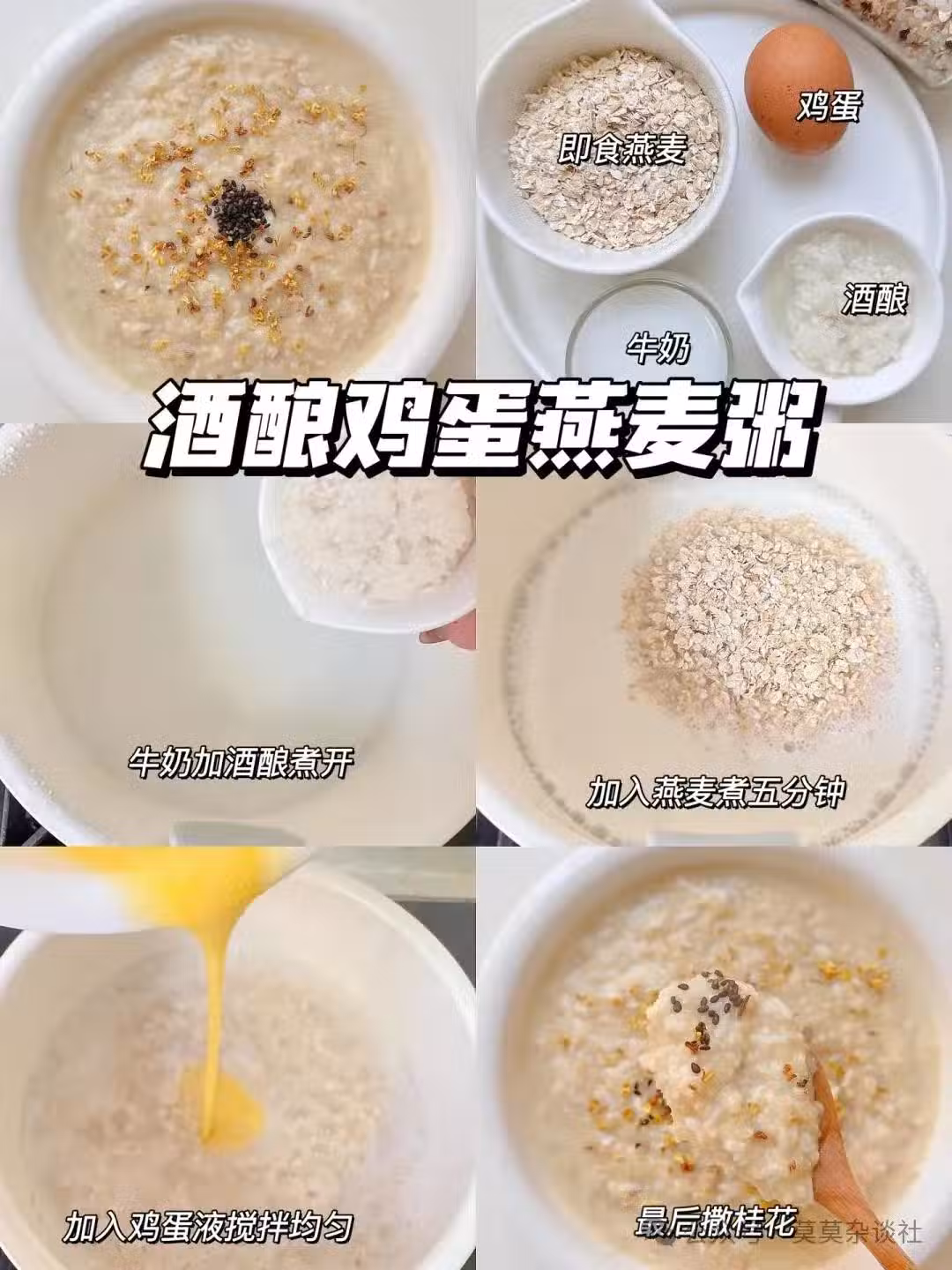 如果你喜歡甜粥,那這款酒釀雞蛋燕麥粥絕對是你的心頭好!酒釀的微甜加上雞蛋的嫩滑,搭配燕麥,喝上一口,暖到心窩裡。