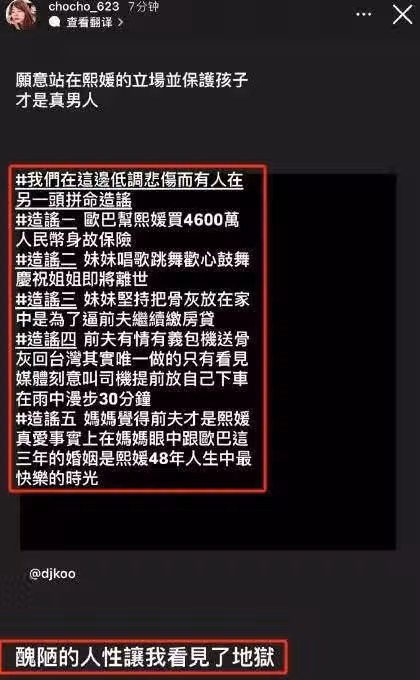 最後,她還寫下這麼一句話,「醜陋的人性,讓我看見了地獄」。