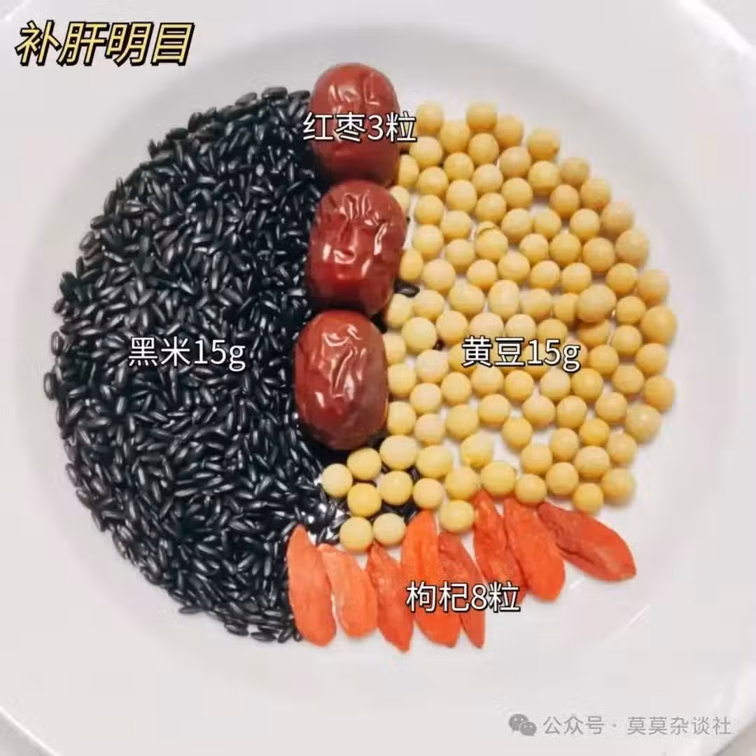 食材:黑米15g | 黃豆15g | 紅棗3顆 | 枸杞8粒