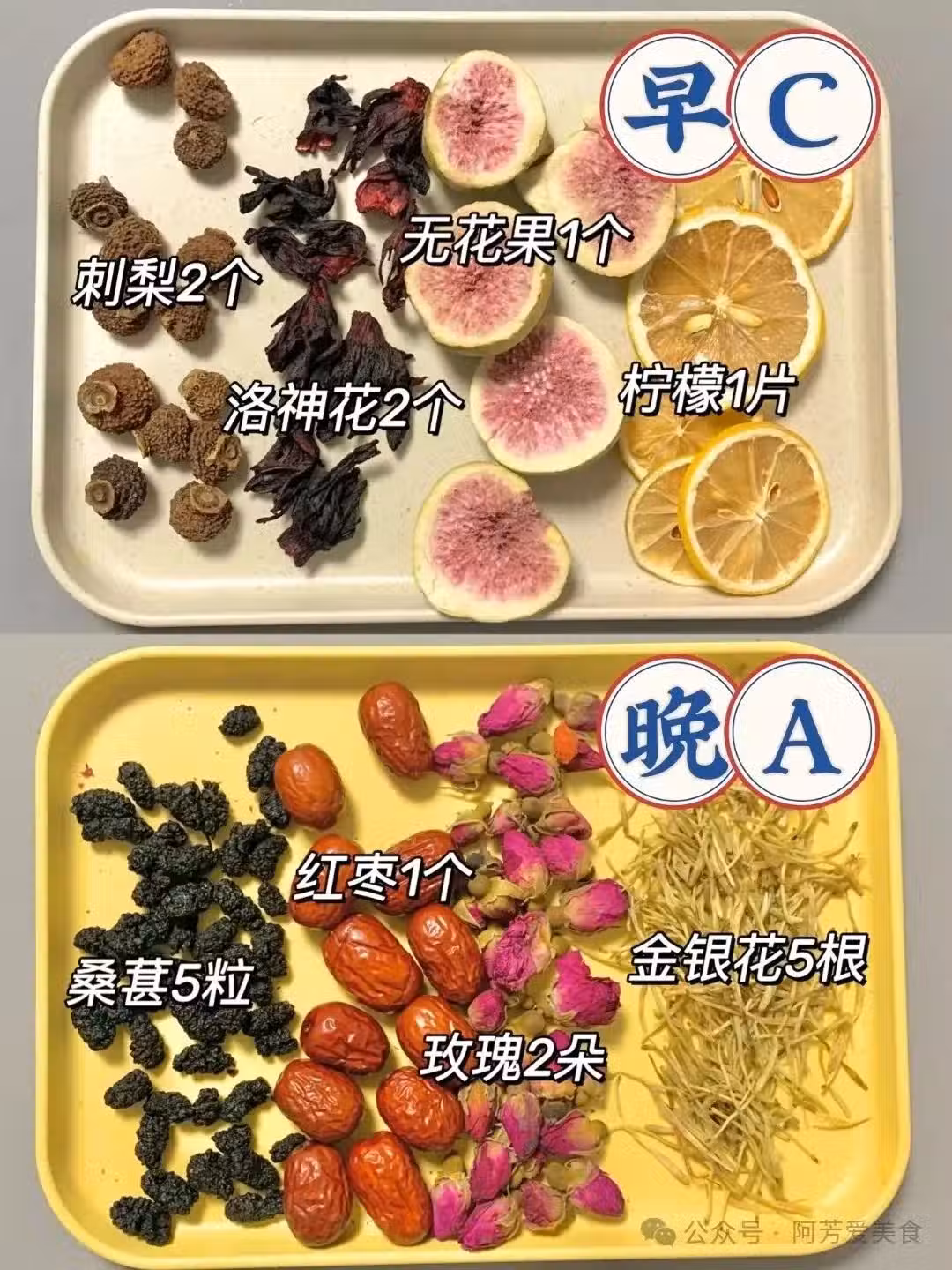 晚a的金銀花搭配玫瑰,還有紅棗和桑葚非常的驚艷,金銀花清爽的口感搭配紅棗的香甜,還有玫瑰的花香,簡直是完美。
