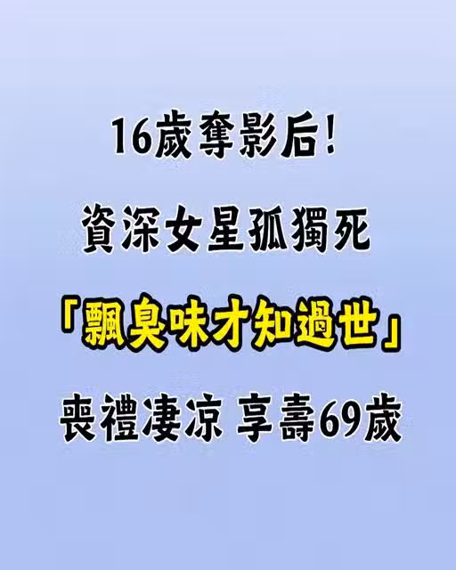 16歲奪影后!資深女星孤獨死「飄臭味才知過世」喪禮淒涼,享壽69歲