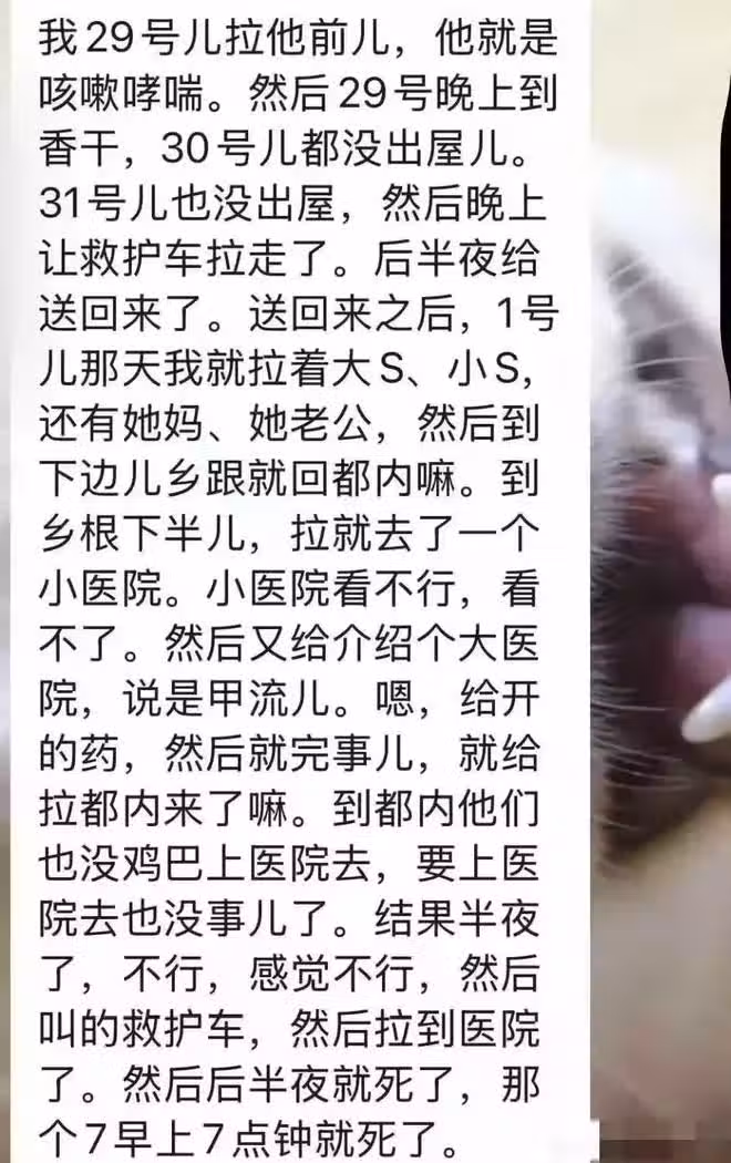 更有一位身處日本的網友表露,大S就醫現場,治療過程波折,大S對於抽血檢查一事十分抗拒,當時就有人在現場,看到大S強烈拒絕抽血化驗,然後果斷離開了大醫院的一幕。