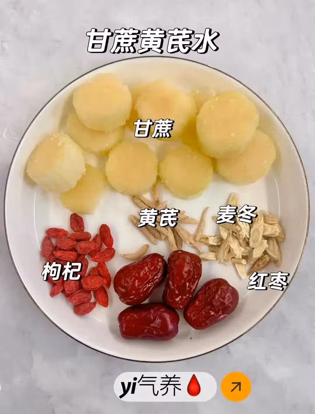 食材準備:甘蔗➕黃芪➕麥冬➕紅棗➕枸杞