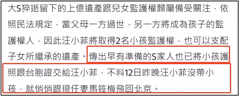 不過汪小菲前腳剛走,S媽就在深夜發文宣戰,台媒更是淪為了徐家打擊汪小菲的工具,時不時漏掉「親友」的料抨擊汪小菲。不知道是不是兩家沒談攏,才導致S媽這個前丈母娘大發雷霆?