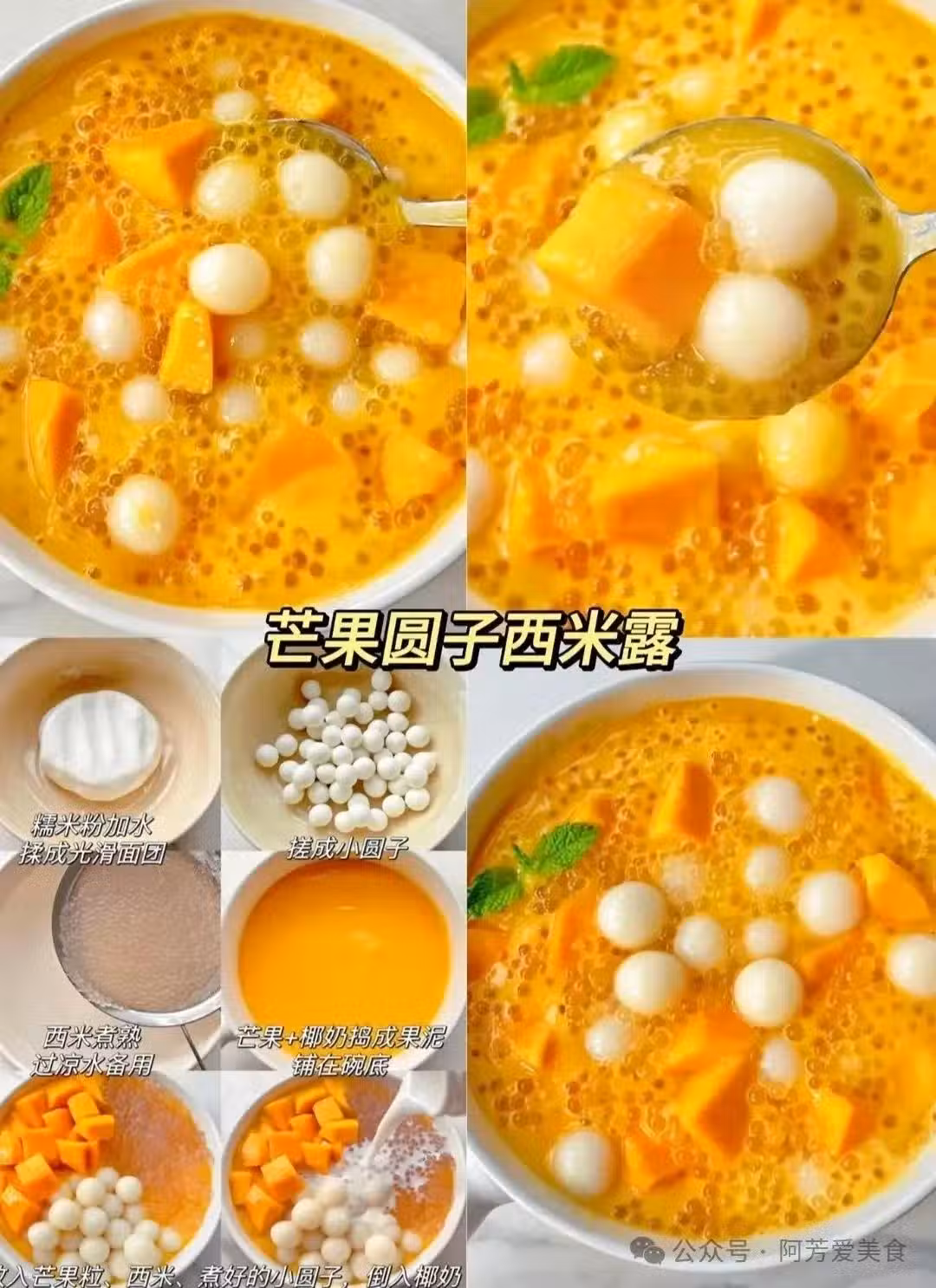芒果源自西米露,它的口感也是非常的好喝。圓子和西米的搭配簡直是完美,q彈軟糯還帶著香甜。