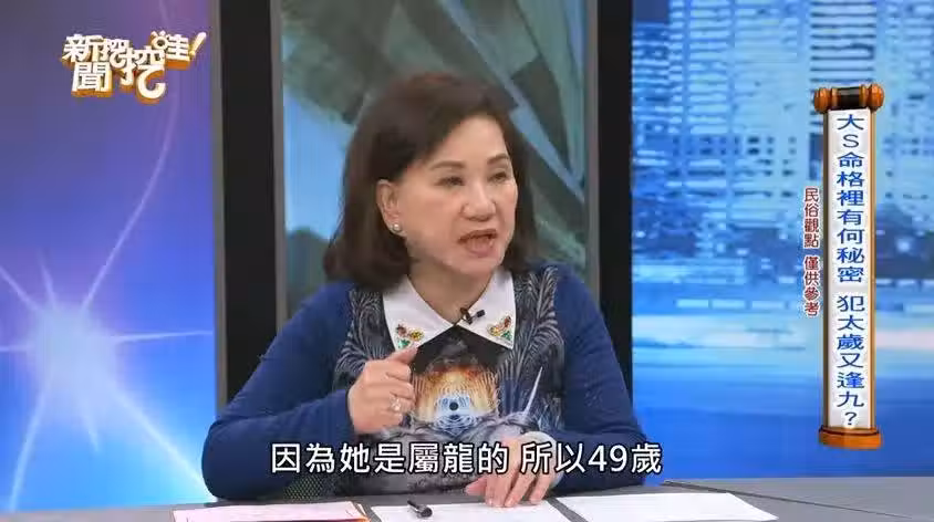 周映君指出,大S以命盤來看是金旺之人,而太歲又是甲辰,辰即為土,土一直生金,認為太歲年對於大S而言太旺,「就像人身體很好不可以一直進補,進補會中風」。
