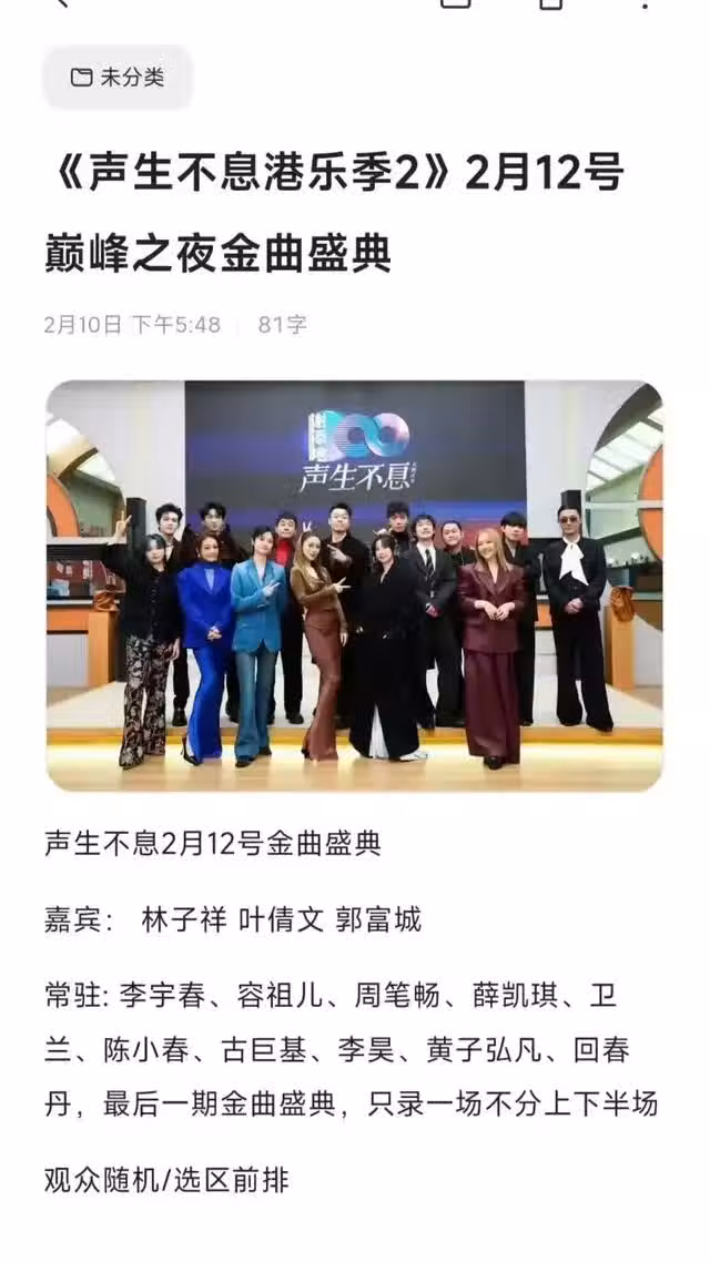 湖南台的綜藝節目一向都是收視的保證。尤其近日播出的《聲生不息港樂季2》更是叫好又叫座。而該音綜也迎來了收官之作,推出最後一期《聲生不息金曲盛典》。據悉這一期陣容鼎盛,除了有老牌唱將郭富城、林子祥、葉倩文外,更有年輕青春一代歌手Supper Moment、姚焯菲等人。