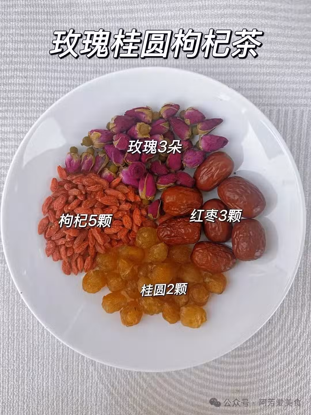 玫瑰桂圓枸杞茶,玫瑰搭配桂圓q彈軟糯的肉質和甜味再加入紅棗,還有枸杞整杯的口感非常的豐富,也很適合大家日常喝。
