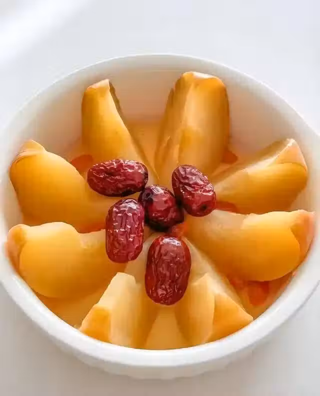 6. 加入冰糖:根據個人口味,適量放入冰糖(可以根據蘋果的甜度調整),如果喜歡更甜口感,可以多放一些冰糖。