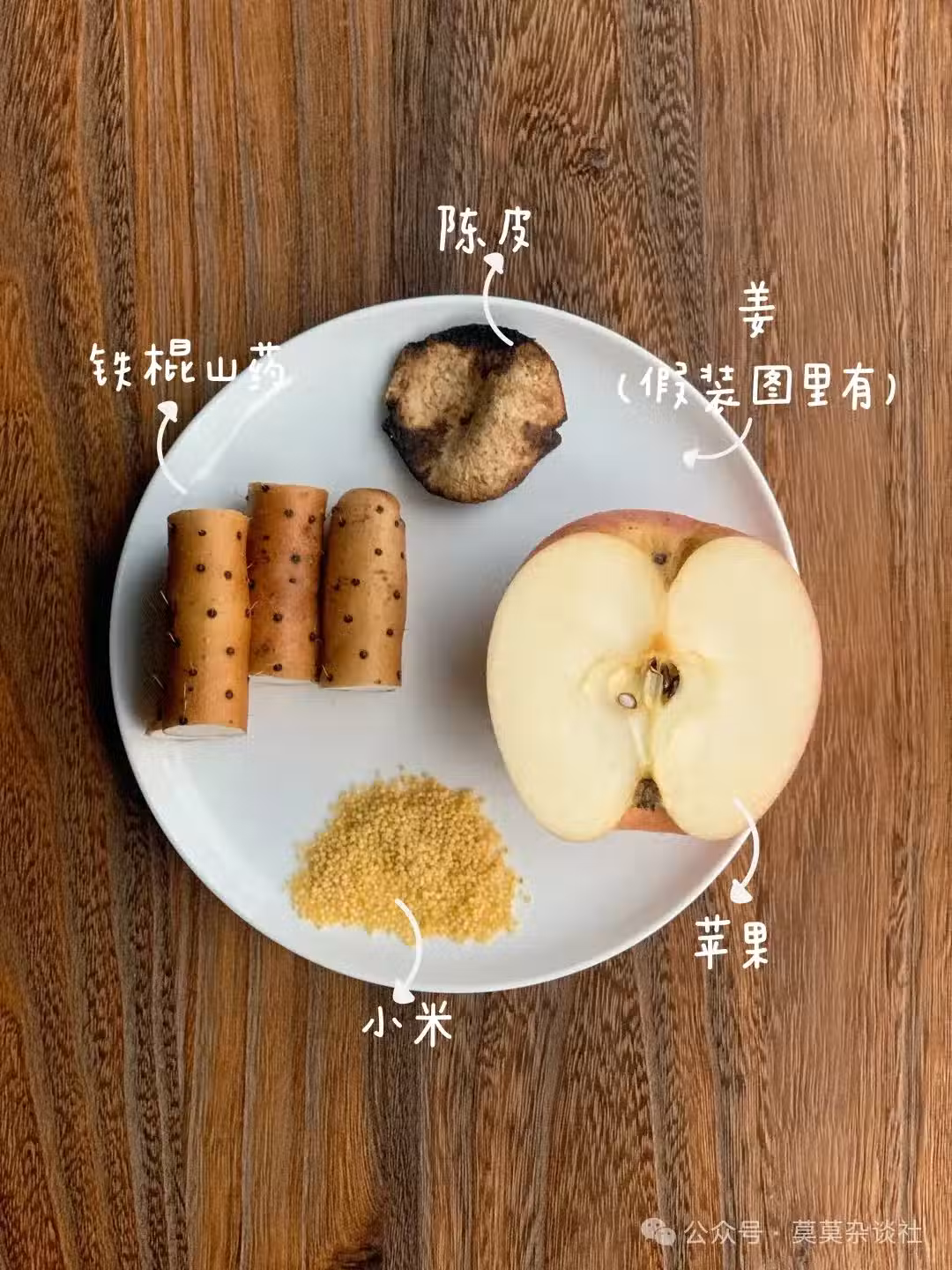 味道及養生功效:這款粥香甜軟糯,帶著陳皮的清香和蘋果的微酸,特別適合脾胃虛弱、容易積食脹氣的朋友。山藥健脾養胃,小米溫和滋補,加上陳皮理氣化濕,簡直是腸胃的「暖寶寶」。