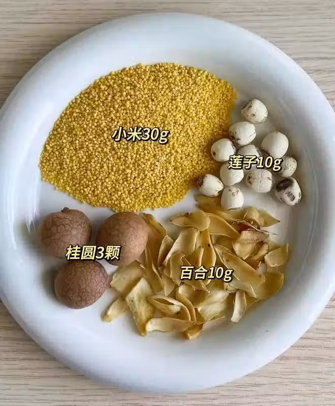 做法也特別簡單,家人們閉著眼睛都能學會!準備小米30g、蓮子10g、百合10g、桂圓10g,再加上600ml 的清水。把這些食材洗乾淨後,一股腦兒地倒入破壁機,然後選擇豆漿模式,就這麼簡單,等著美味的小米蓮子百合桂圓羹出爐就行了!