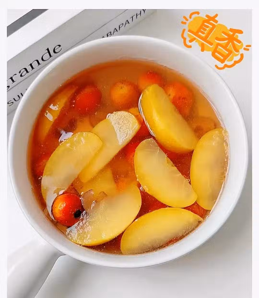 ①準備適量山楂、一個蘋果、幾顆紅棗、適量冰糖。將蘋果洗凈切片,紅棗去核。