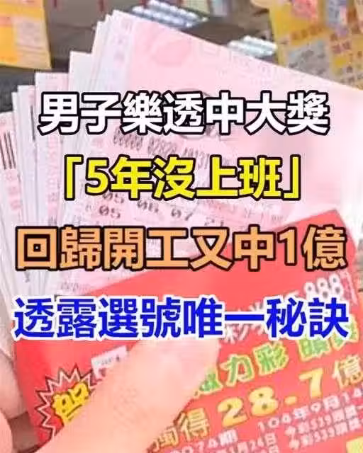 男子中樂透大獎「5年沒上班」!回歸開工「買又中1億」透露選號唯一秘訣