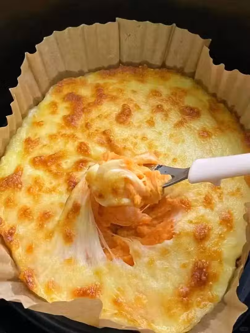 3️⃣ 空氣炸鍋160℃烤6分鐘至芝士瀑布拉絲
