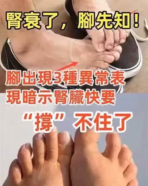 假如這三種反常表現呈現在腳上,很可能是腎臟現已生病了,所以不要確實。