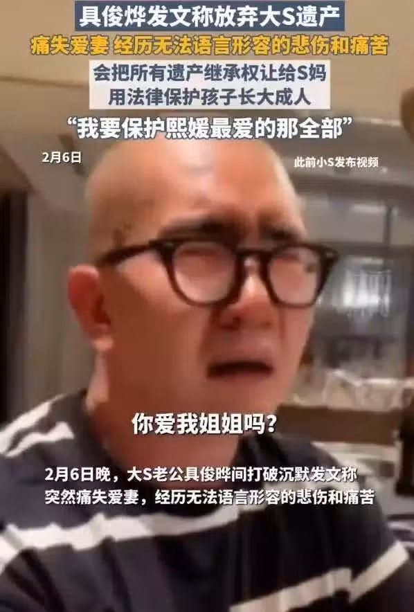 在處理好大S的後事,將大S帶回台灣之後,具俊曄才有精力回應了幾個網絡上大家都非常在意的問題。