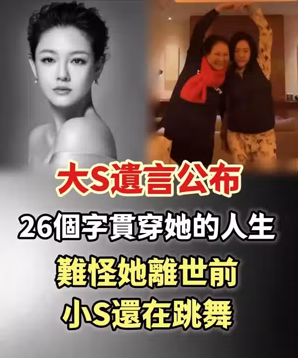 大S遺言公布,26個字貫穿她的人生,難怪她離世前小S還在跳舞....!