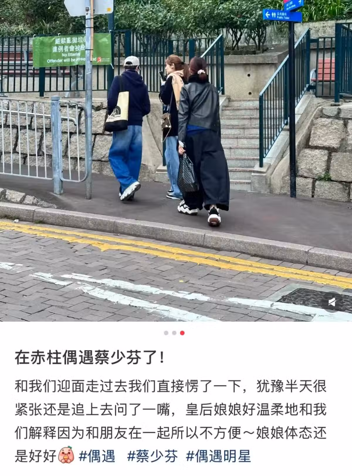 在路人視角下,三人的狀態跟蔡少芬曬出的照片一樣好,可以說是一模一樣,身材都相當高挑苗條,走路儀態也非常好,不愧是港姐出生的大美女呀。