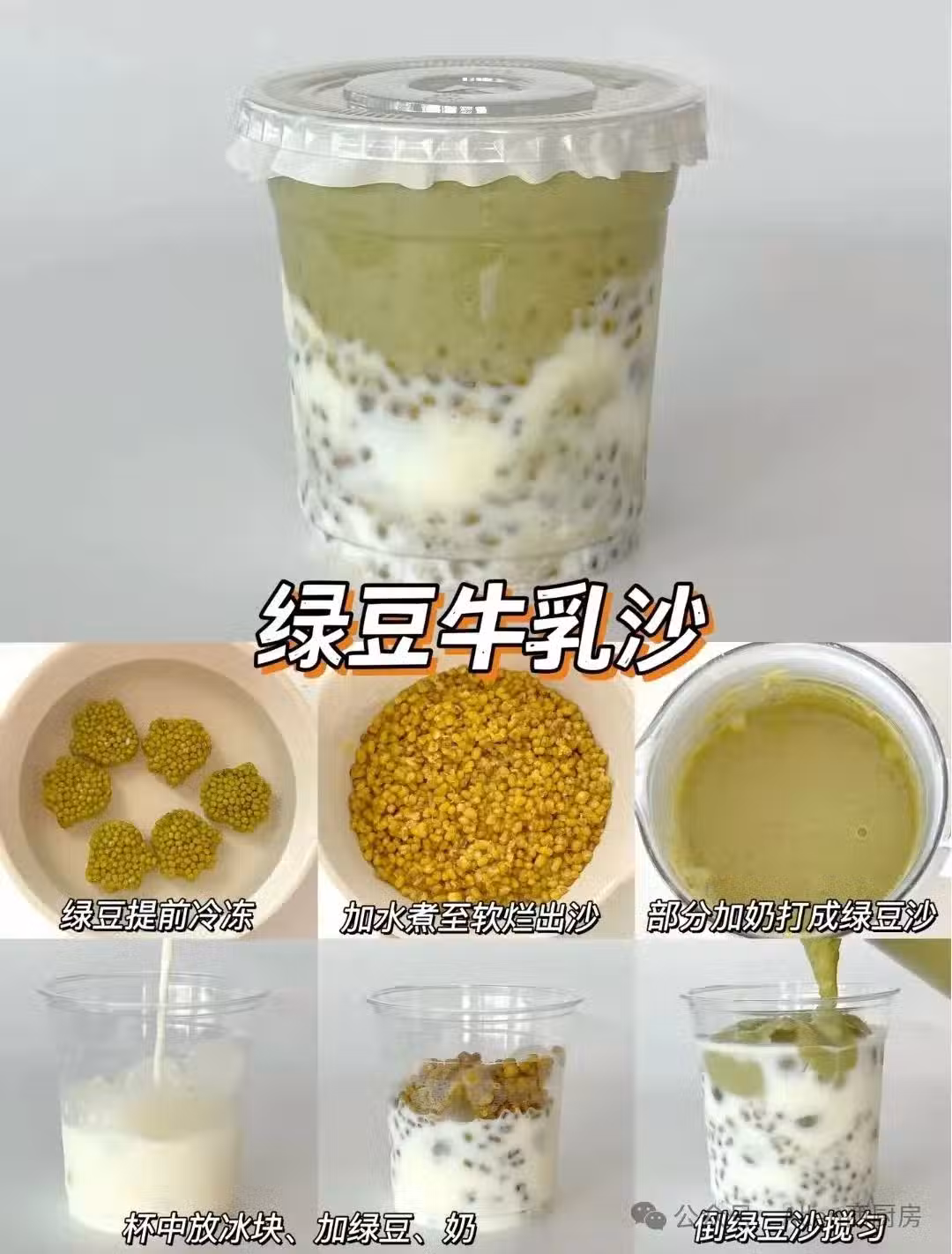 以下是綠豆牛乳沙的製作步驟及參考重量: