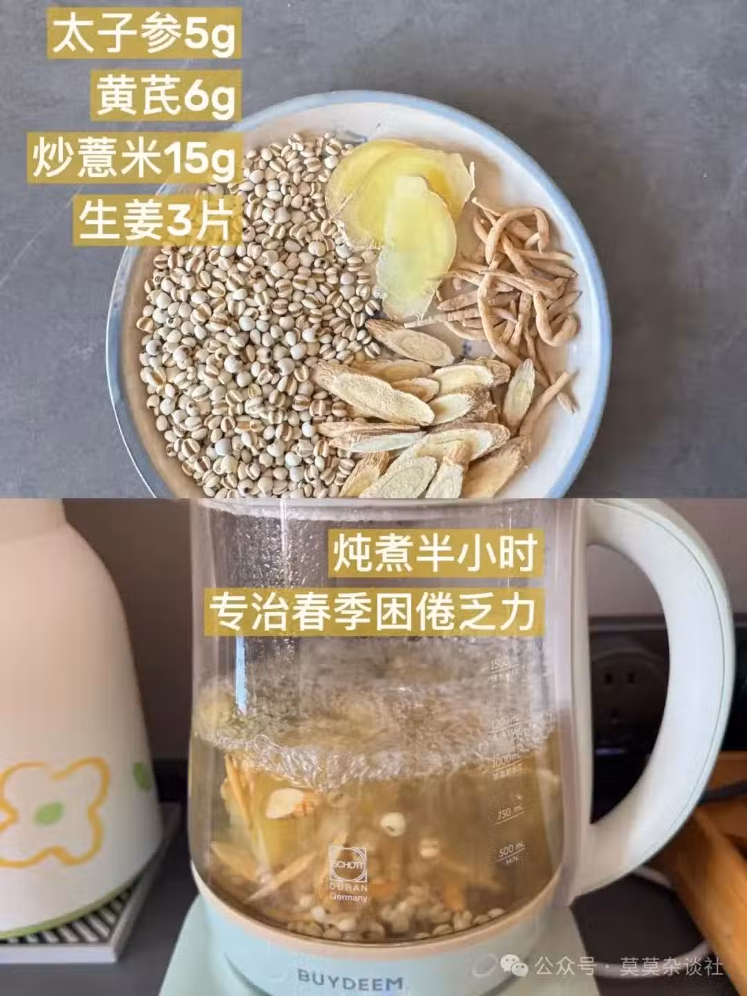 食材:太子參6g | 黃芪6g | 炒薏米15g | 生薑3片