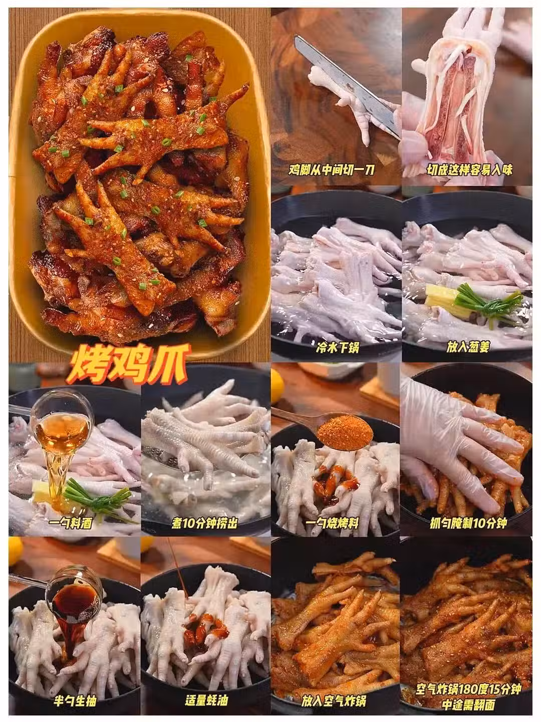 比滷味店還上頭的存在!雞爪剪指甲(重要!)刷秘制醬料,烤到膠質黏嘴唇。建議配一次性手套,別問,問就是舔過手機屏...