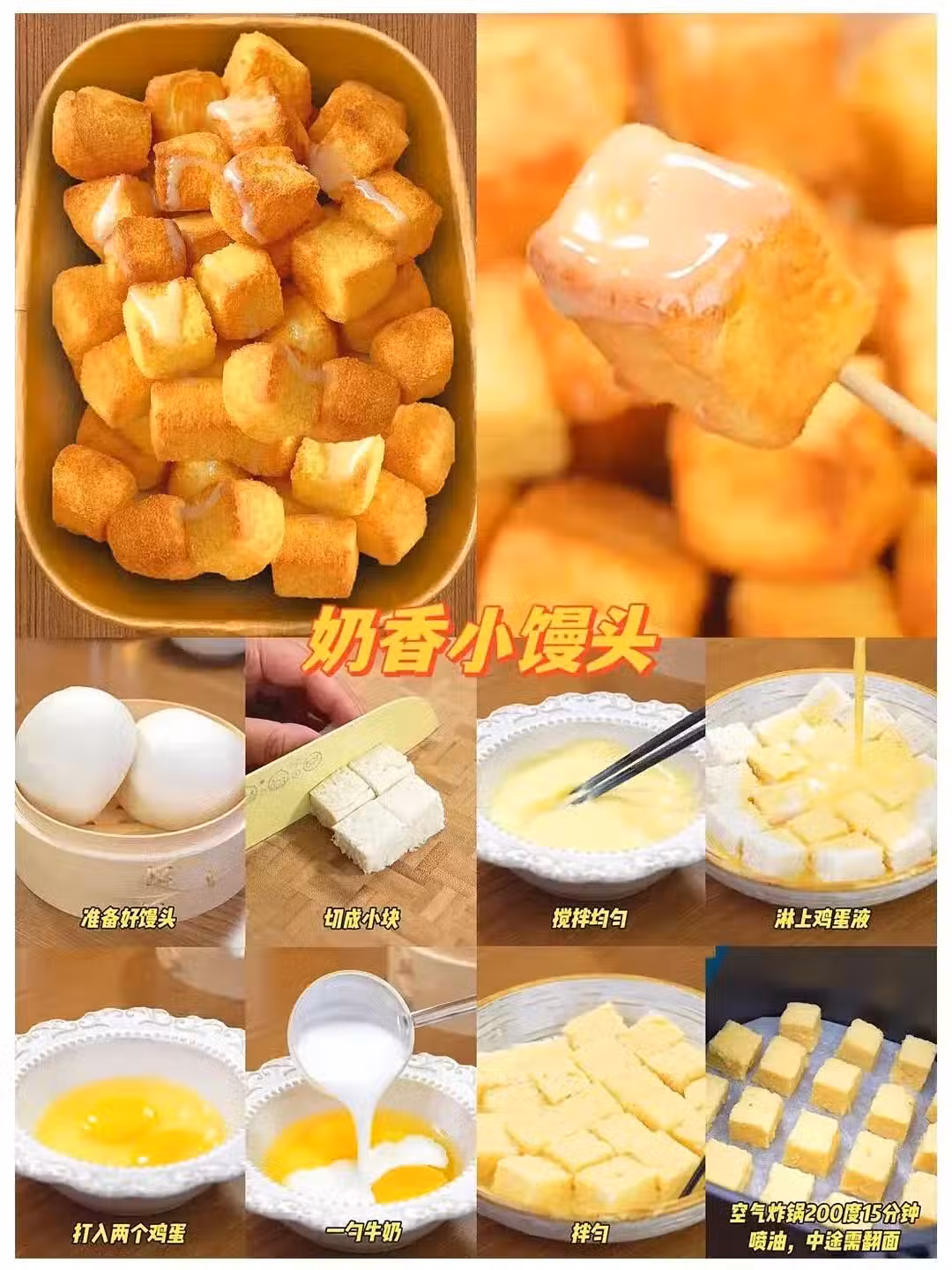 奶香小饅頭北方人看完直拍大腿!普普通通的白饅頭,烤完像雲朵長出了焦糖盔甲。蘸酸奶吃能解鎖新大陸,信我!