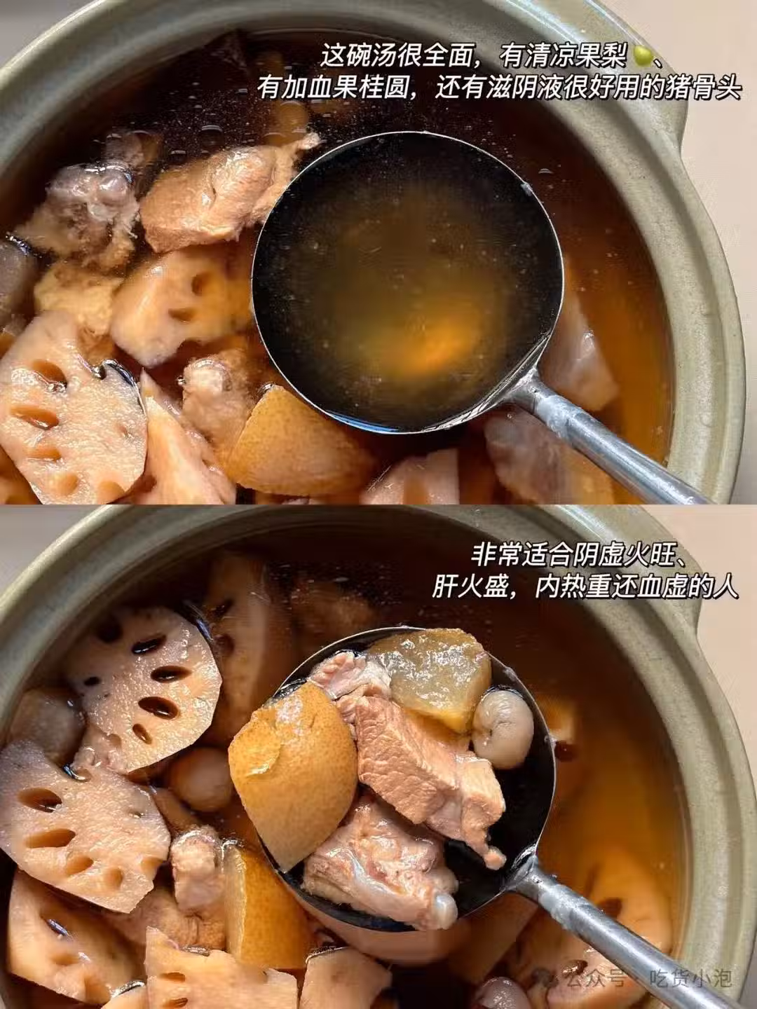 總之,這道蓮藕梨湯不僅美味,還具有很好的養生功效,特別適合需要滋陰潤燥、補血養顏的人群。