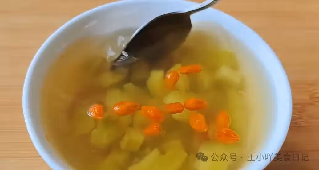 出鍋享用:最後,關火,將苦瓜山楂湯盛入碗中,稍微放涼即可飲用。此時的湯色清澈透亮,酸甜中帶著微微的苦澀,回味甘甜,既清爽開胃,又解膩助消化。