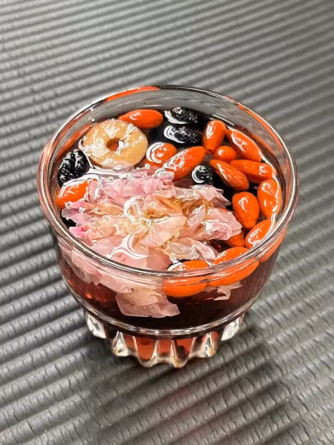 食材:桑葚、枸杞、玫瑰、紅棗各3~5克。