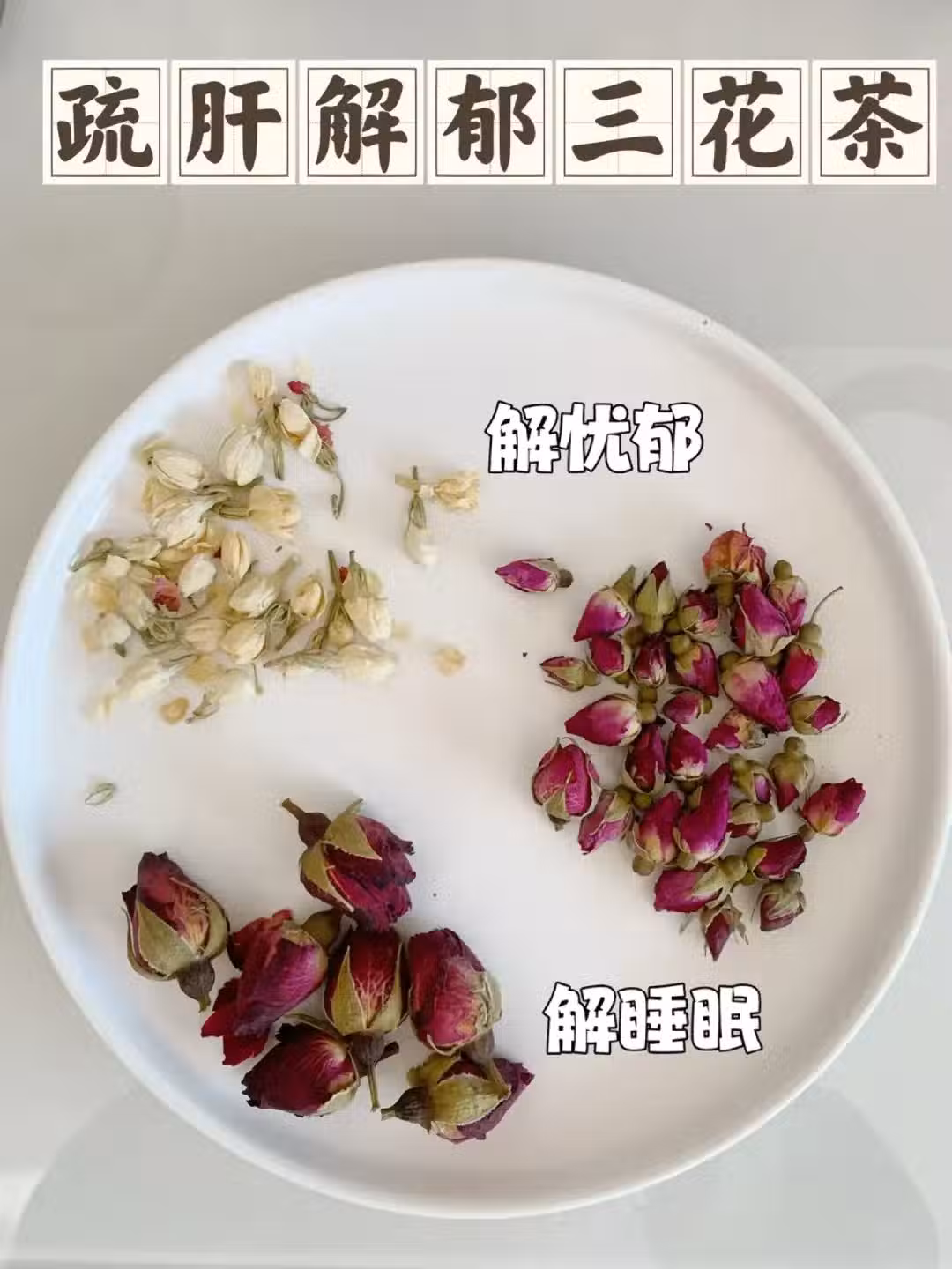 食材:玫瑰花6小朵、月季花6朵、茉莉花12朵。 做法:將洗凈的花材加入開水沖泡即可,花香四溢,令人心曠神怡。