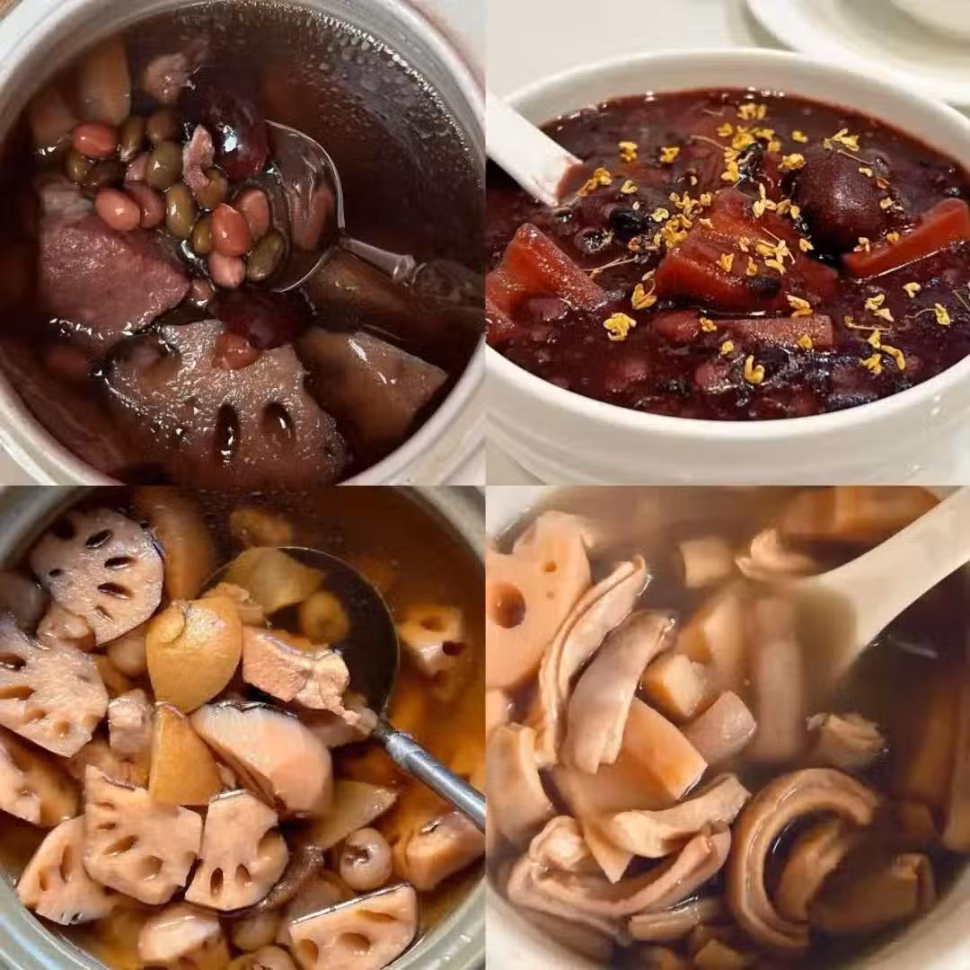 此湯以蓮藕、黑豆和花生為主,三者相結合,不僅能幫助補血養氣,還能健脾開胃,尤其適合氣血兩虛、脾胃虛弱的朋友。黑豆和蓮藕對女性補氣血、潤澤肌膚有很好的效果,而紅棗和桂圓則能提升血液循環,增加體力。