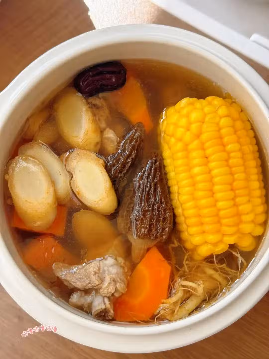 鮮人參、羊肚菌、麥冬、紅棗、玉米、胡蘿蔔、排骨