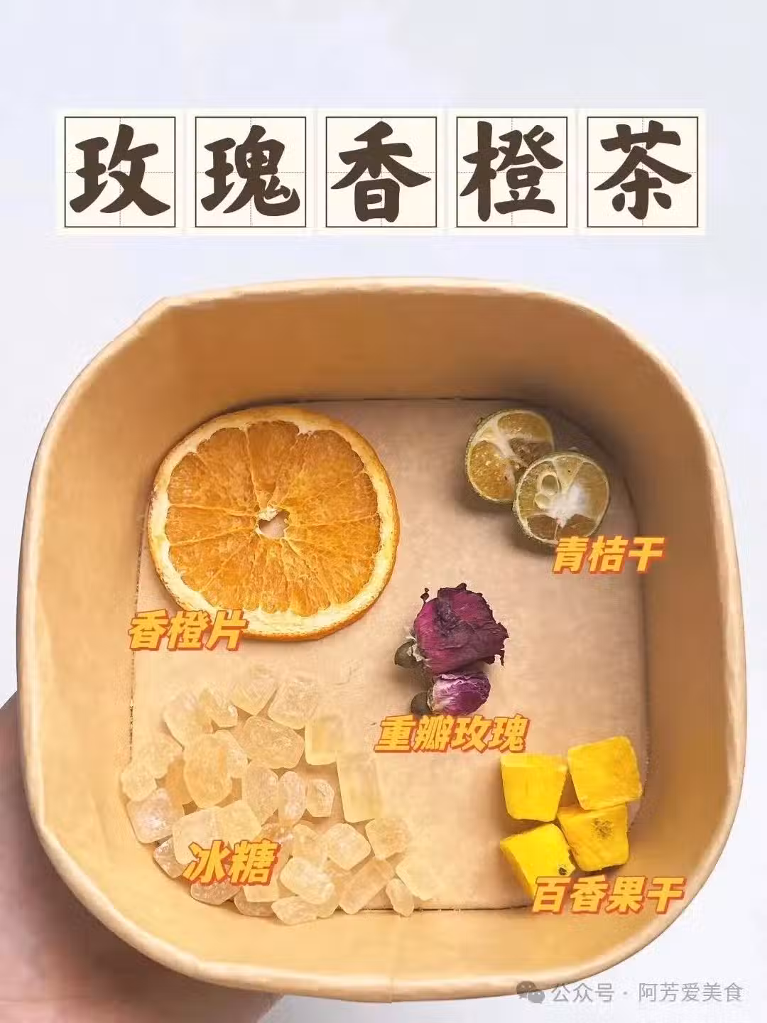 玫瑰香橙茶,玫瑰的獨特氣味和百香果乾的清爽香甜搭配,好喝又美味,特別的清爽噢。