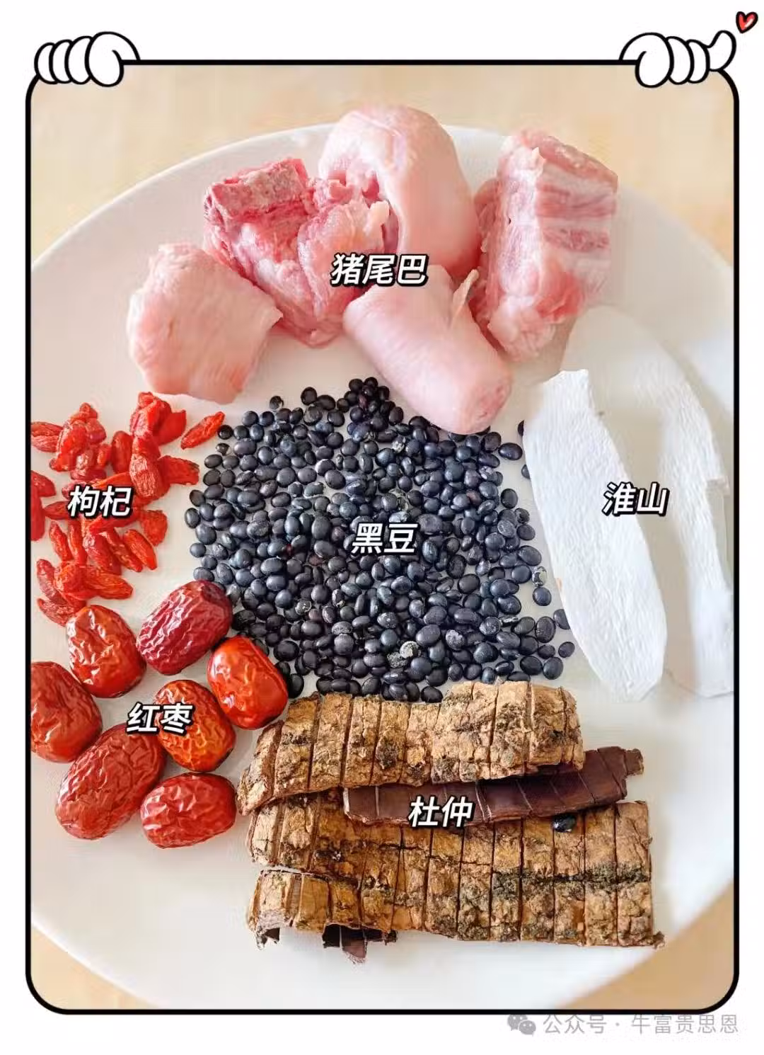 1. 黑豆提前浸泡2小時,豬尾焯水去腥