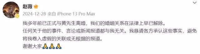 去年12月,趙薇時隔三年兩次發文,一次是悼念瓊瑤阿姨,第二次是官宣與黃有龍離婚的消息,雖然對於離婚一事大家並不覺得意外,但趙薇還是衝上了熱搜,連續多日被討論著。