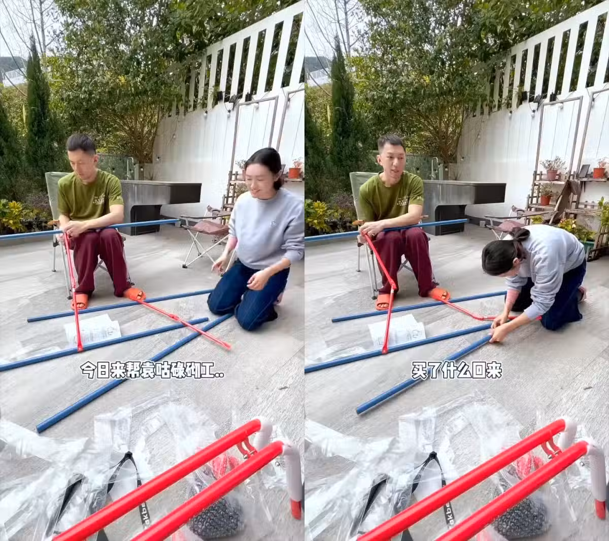 張寶兒日前上載影片,見到素顏的她與一臉憔悴似未睡醒的老公袁偉豪在花園動手砌鞦韆,只見張寶兒非常興奮,袁偉豪則揶揄她指:「這個媽咪又不知道買了什麼東西回來?」邊表達不滿邊繼續親自組裝。