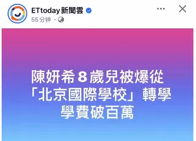 此前星星一直就讀於北京國際學校,這所學校是正兒八經的貴族學校,該校可謂星二代雲集,一年學費就高達27萬,不過從台媒給出的消息可以得知,星星接下來大機率會跟隨媽媽陳妍希去台北上學,由此可以推斷,陳妍希最終拿到了兒子的撫養權。