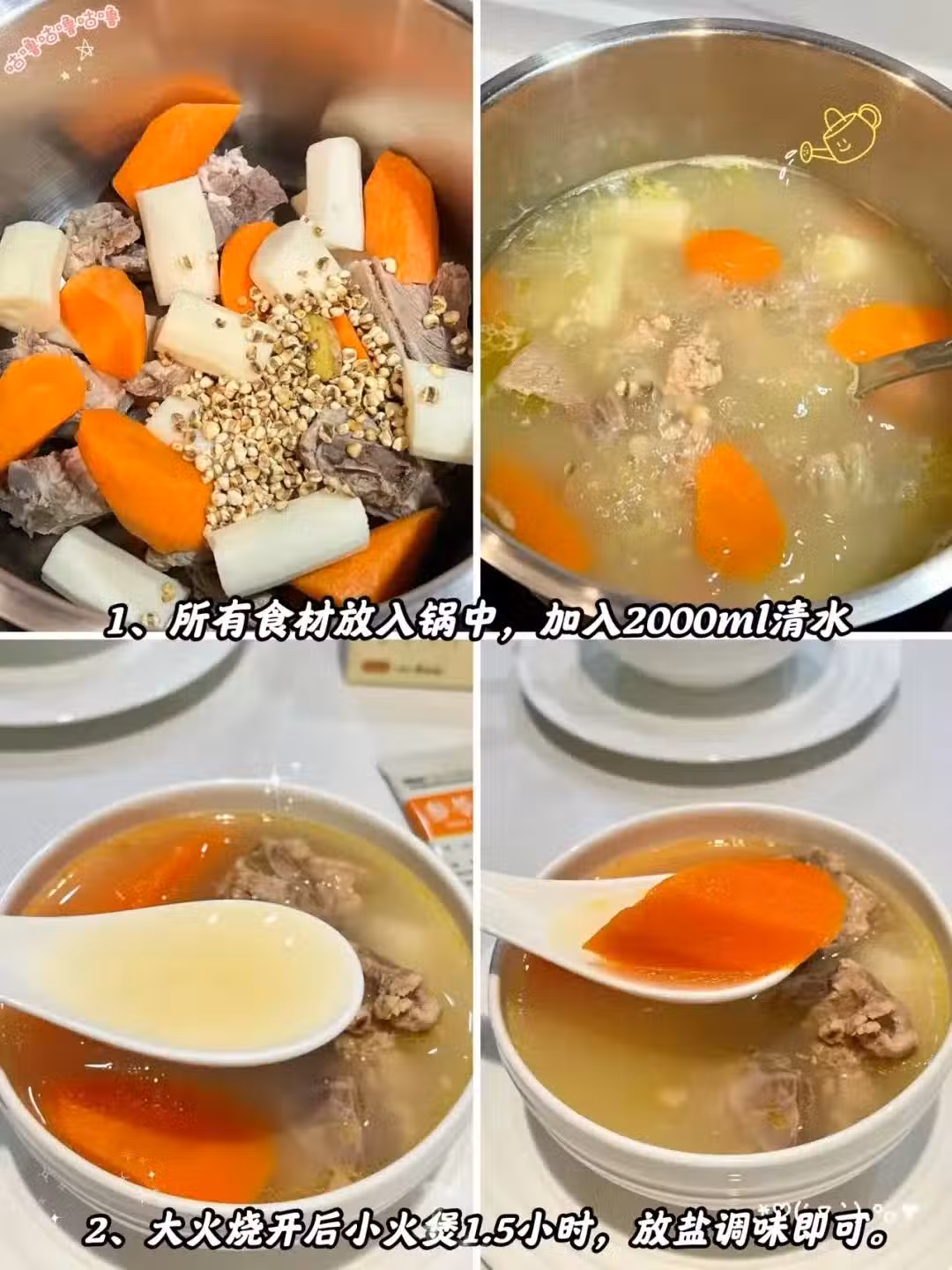 它們搭配在一起,能直接加倍健脾胃的效果。喝起來湯味濃郁鮮美,豬肚軟糯,食材也很香甜哦!