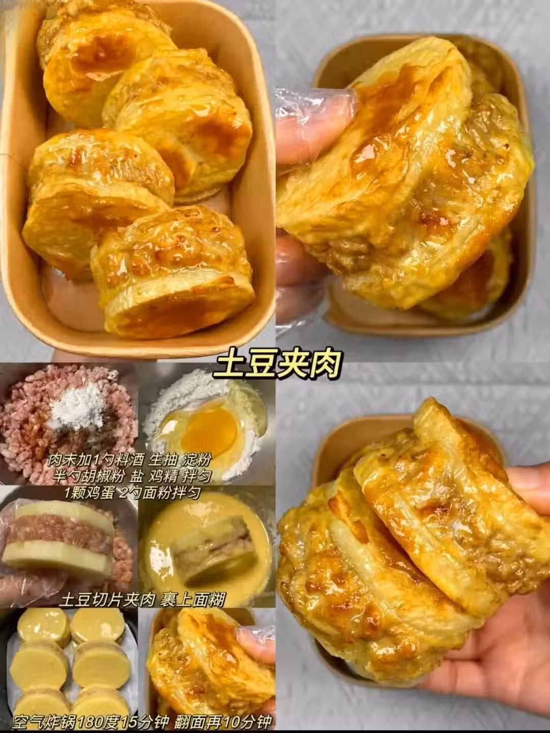 東北夜市靈魂附體!土豆切片夾調好味的肉餡,裹澱粉油炸,外脆里糯還爆汁,撒辣椒麵香到鄰居來敲門!