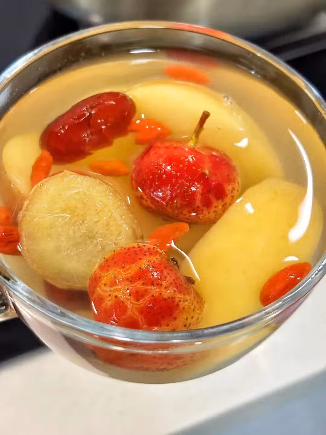 🥗食材準備:蘋果1個、紅棗5顆、枸杞3g、生薑6片、山楂6g