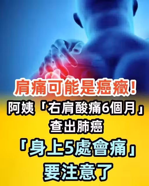 肩痛可能是癌症!阿姨「右肩酸痛6個月」查出肺癌「身上5處會痛」要注意了.