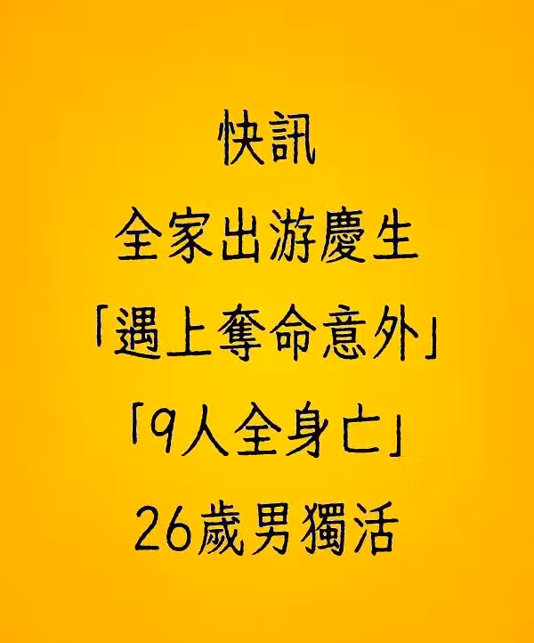 快訊/全家出遊慶生「遇上奪命意外」!「9人全身亡」26歲男獨活!