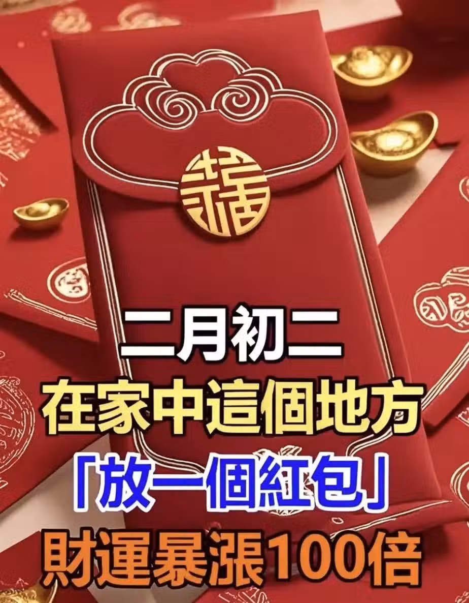 風水師偷偷透露:二月初二在家中這個地方「放一個紅包」財運暴漲100倍,旺到年底!!