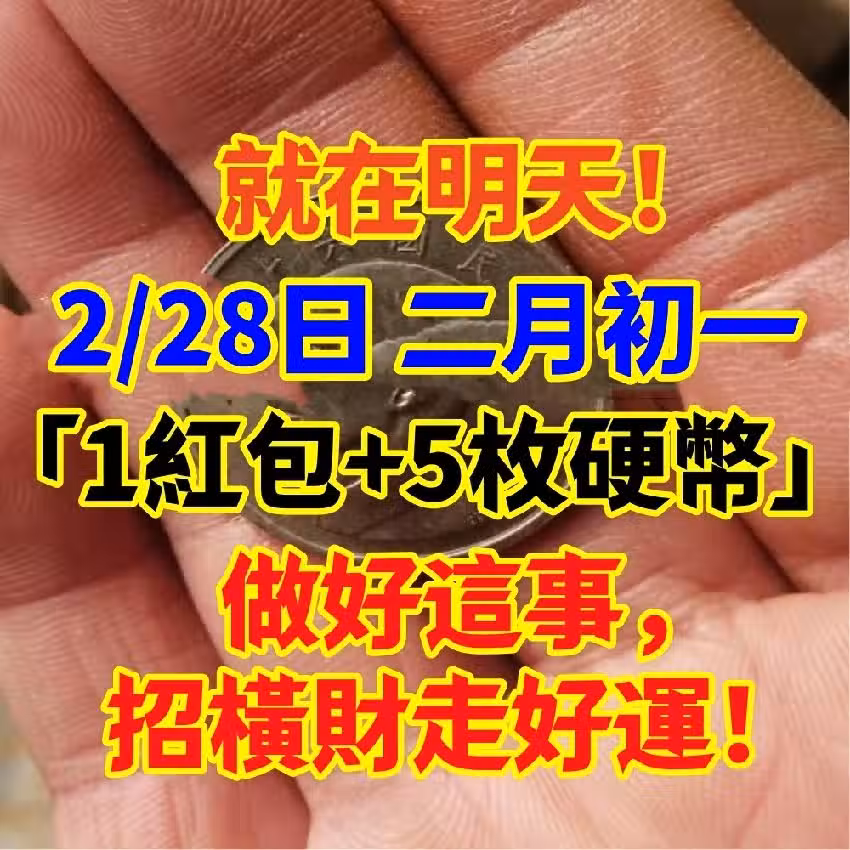 就在明天! 2月28日「二月初一」準備「1個紅包+5枚硬幣」做好這事,招橫財走好運!