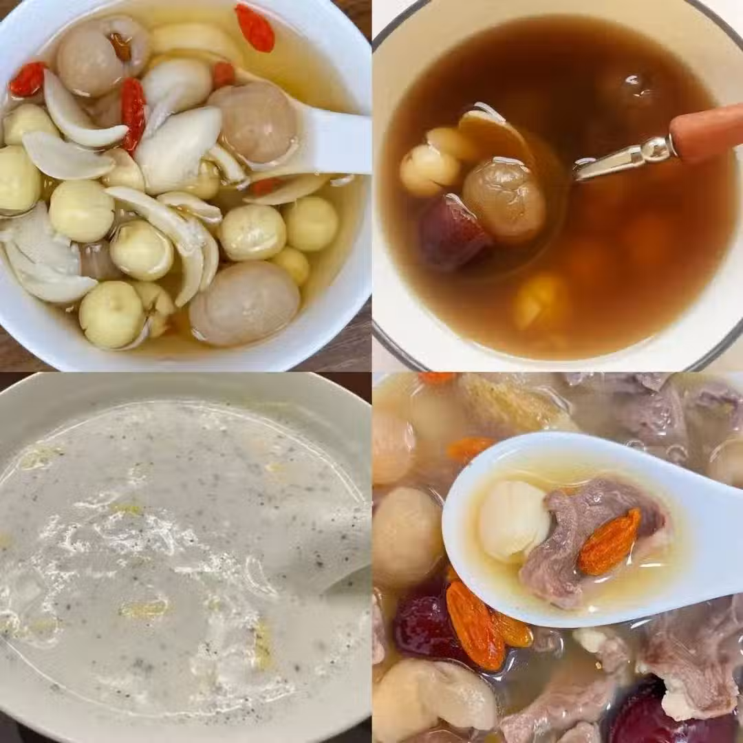 蓮子、百合和桂圓被譽為傳統的「安神三寶」,具有清心安神、潤肺養顏的作用。百合有助於緩解焦慮、消除疲勞,桂圓能滋補心脾,改善記憶力,並且具有助眠效果。常食此湯,能幫助你放鬆心情,快速進入深睡眠狀態。